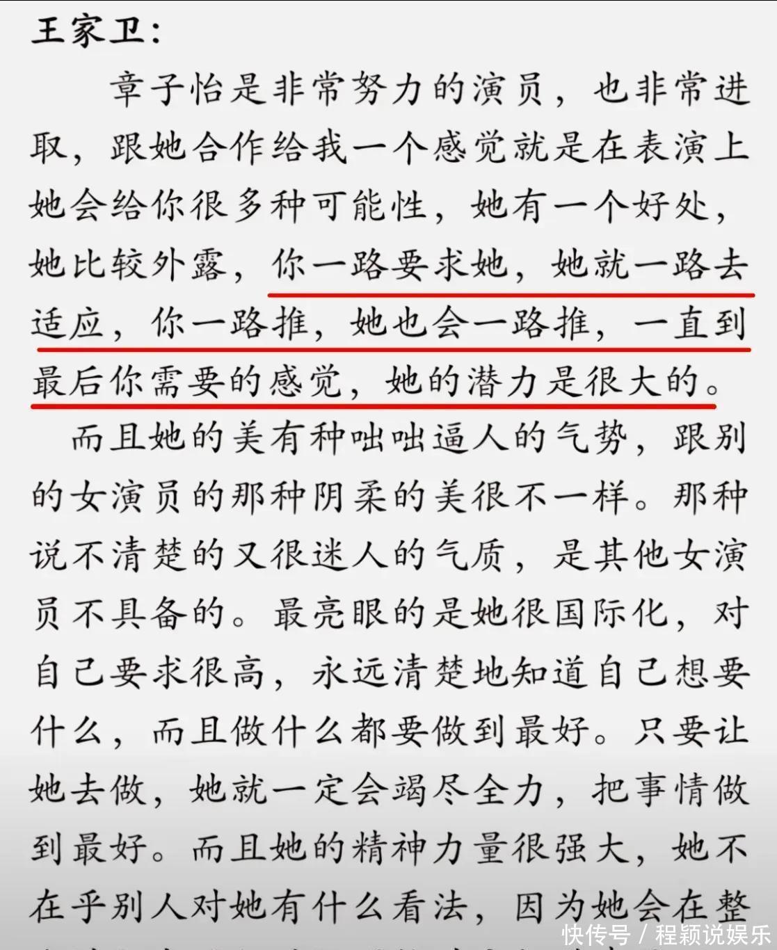王家卫后来评价她:“你越逼她,她越能跟你扛,永远会拼尽全力做到最好。”
